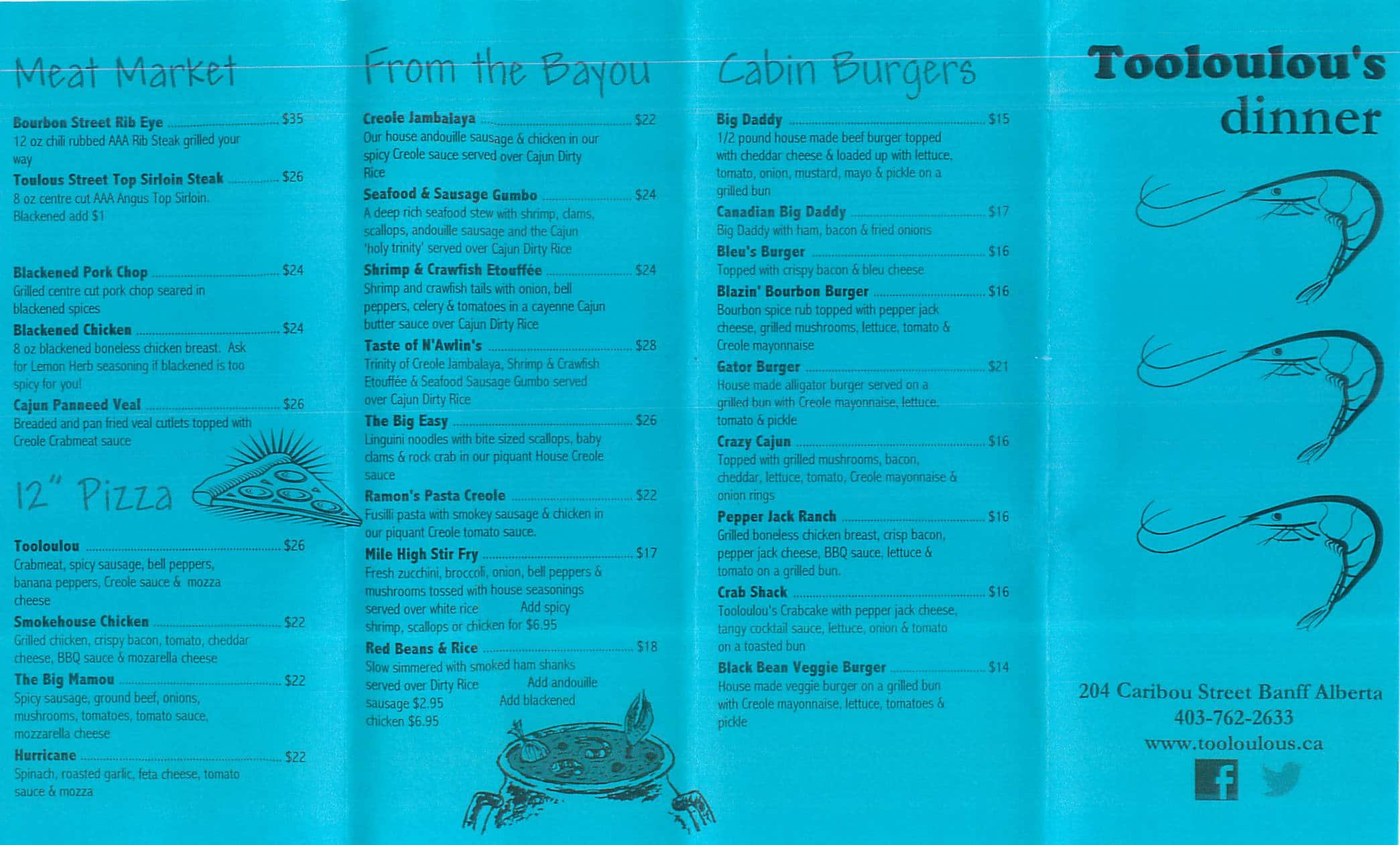 A delightful enclave of Louisiana nestling in downtown Banff. With its colourful decor and welcoming atmosphere the scene is set for a relaxing evening. The menu had a formidable range of dishes which were accurately described. We were cheerfully greeted by Andy who offered informed advice when It came to ordering ... the meal. The dishes were an authentic interpretation of Cajun cuisine and were good value for money. Read more