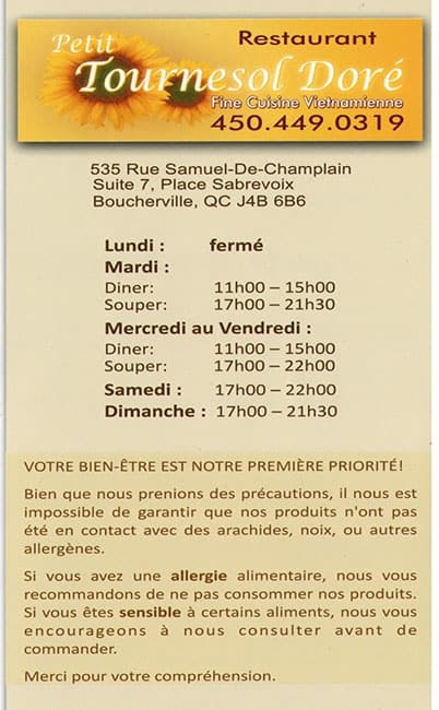 Petit Tournesol Doré offers a charming escape into the flavors of traditional French cuisine, nestled in the heart of Montreal, Quebec. Renowned for its cozy ambiance and commitment to using fresh, local ingredients, this quaint eatery presents a menu rich with classic dishes reimagined with a modern twist. Perfect for those looking to savor the essence of France in a warm and welcoming environment.