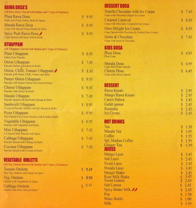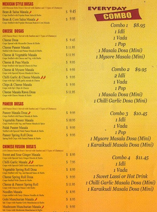 Great value! You can get a big meal with 2 'mini' (but still quite large and filling) dosa, idly and vada with a drink for less than $15. Sambar is delicious but the chutneys weren't the best I've had. I found the coconut chutney particularly disappointing but it ... didn't ruin the meal. Customer service was good however and my meal came very quickly (and was eaten quickly!) Overall good food considering the price. Read more