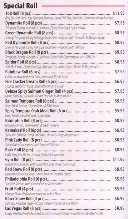I recently dined at 168 restaurant that offered an all-you-can-eat dinner menu, and I was eager to try out their sushi offerings. Overall, the freshness of the fish was quite impressive, although I must admit that the sushi sizes were on the smaller side compared to other sushi restaurants I've ... been to. However, this slight drawback was quickly overshadowed by the opportunity to sample other foods such as wok and their speciality rolls. Despite the smaller sushi portions, I found the restaurant's all-you-can-eat dinner menu to be a great option for sushi lovers who value variety and appreciate fresh fish. The quick service and pleasant atmosphere further enhanced my overall dining experience Read more
