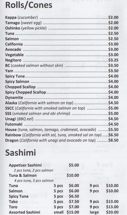 Nice Sushi. only reason not give out 5 stars...is some sashimi is still frozen. :) Can taste icy-ish inside the fish meat. The price is not cheap anymore...the menu uploaded by visitors are way outdated.