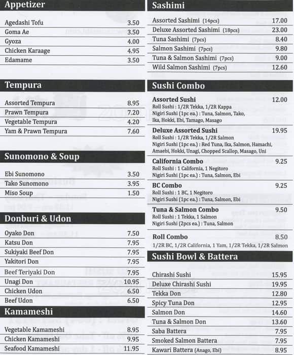 Average sushi. The vegetable roll and the avocado with mango roll were light and refreshing but the salmon sashimi was quite fishy. The tuna sashimi was cleaner tasting and the other rolls we ordered such as the chopped scallop, bc roll, and unagi roll were just average. Does the job ... of satisfying basic sushi cravings. Read more