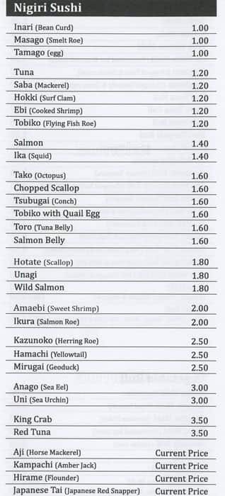 Sushi Place, Management, Chef, Customer Service, Good Food, Portion