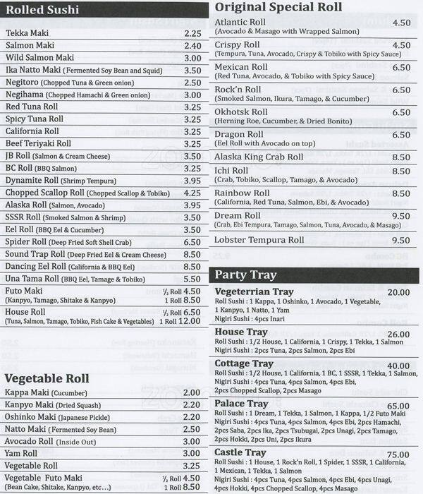 Enjoyed our sushi rolls today. Service was fast and rolls and miso soup was tasty. No problem getting a table at 1 pm. Came again today and had bento box c. Huge pieces of tuna sashimi. Salmon cheek a little mushy. Wife had awesome roll with lots of imitation crab. ... Easy to get table at lunch time. Parking in back stall 7-10 Read more