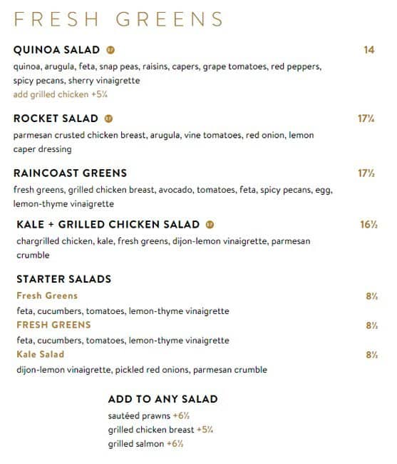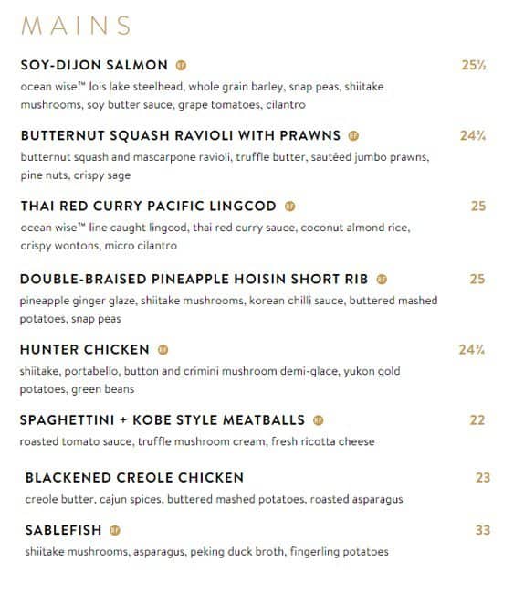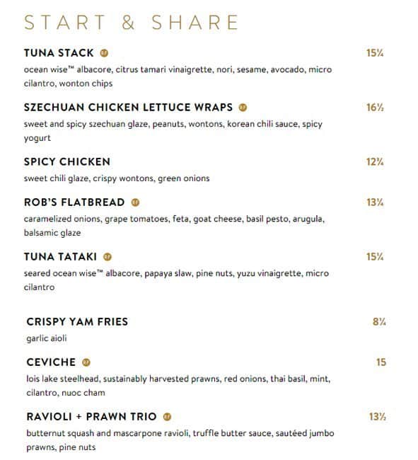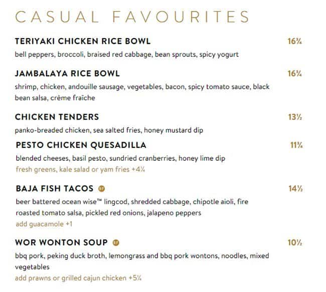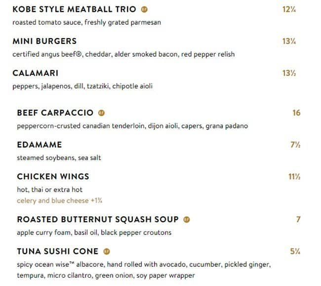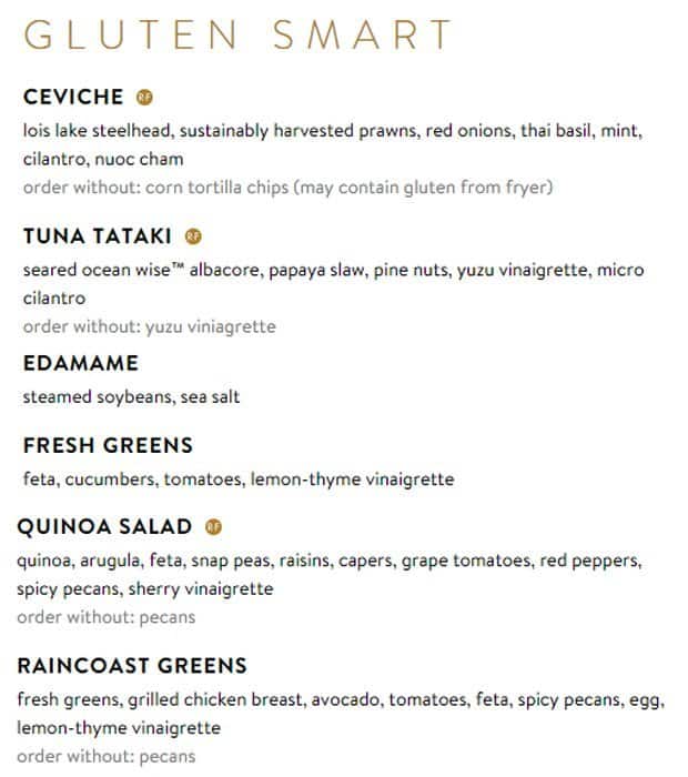 development system Menu of Cactus Club Cafe - Burnaby, British Columbia