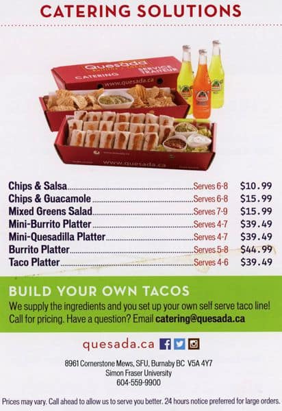 Quesada Burritos & Tacos in Burnaby, British Columbia, serves up a tantalizing menu of Mexican favorites, including hearty burritos, flavorful tacos, and more. Known for its fresh ingredients and customizable options, it offers a vibrant dining experience that invites patrons to savor authentic tastes in a welcoming atmosphere. Whether you’re in the mood for a quick bite or a leisurely meal, Quesada is the go-to spot for Mexican cuisine aficionados.