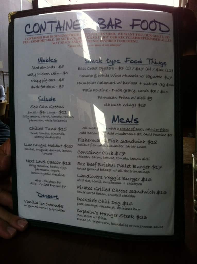 A gf and I have had this spot on our radar for quite some time. We both had a very different expectation of what we found. I don’t know why, but I expected it to actually be a container which was a very cool concept. The furniture was just regular ... patio furniture and ambiance wasn’t super welcoming. There was music until 11;15 and then they turned it off. I assume they had closed but no one told us about this. I ordered a paper plane (which didn’t list lemon juice in the ingredients on the menu so I asked to include that). It came a completely different colour than I have ever had and it did not taste right. The server was lovely and said the bartender would remake. It was a bette colour the second time, but heavy on bourbon flavour. A paper plane had equal parts bourbon, amaro, aperol and lemon juice. You shouldn’t taste any of them strongly. My gf ordered a classic margarita and the first was super salty. Not the rim, the actual drink. It was remade, but then all we could taste was cointreau. They do make a good Moscow mule though. The cheese bread tasted good, but was very greasy. The fries were yummy. Read more