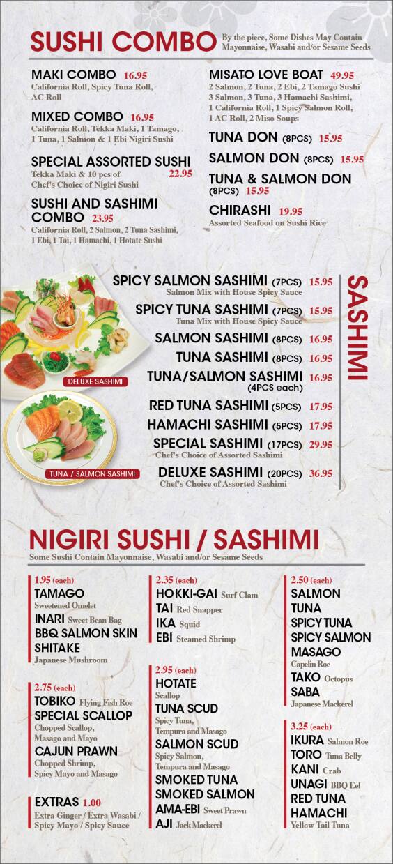 Always Fresh! Always Yummy! Always Friendly! We always know for delicious sushi Misato delivers the most unique tasty rolls every time. And the staff is so kind and will answer any questions you have. I definitely recommend the Alberta Roll, it’s a beef roll and it’s so tasty! I always order the Tempura ... Yam roll too!! The beef tataki appetizer has these crunchy little bits and a yummy ponzu sauce. It’s an open atmosphere and still I find it cozy and quiet. It’s very child friendly too! Best sushi restaurant in Calgary!!!!! Read more