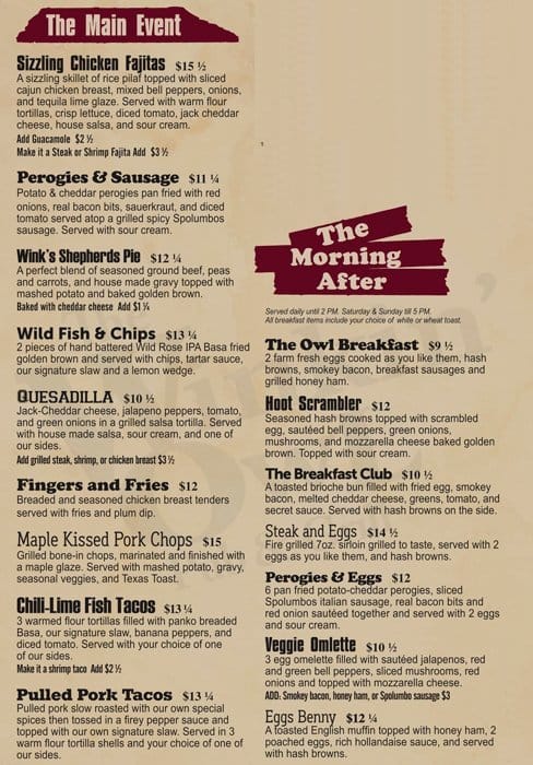 The Winkin’ Owl Pub is a cozy and inviting spot in Calgary, Alberta, where patrons can enjoy a wide selection of beer, spirits, and hearty pub fare. Known for its friendly atmosphere and lively entertainment, it’s the perfect destination for a relaxed evening with friends or a fun night out. Whether you’re there to catch a game, enjoy live music, or simply savor the delicious food and drinks, The Winkin’ Owl guarantees a memorable experience.