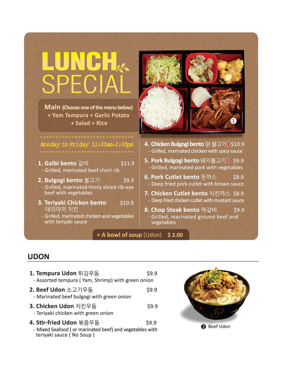 I would say this is the best Korean place yet downtown! I have tried other Korean places in Chinatown and this is the best in terms of soup. Highly recommend the seafood soup. The potato side dish is a crispy and super addicting. We had to order extra crispy potato ... side dish 😂 Read more