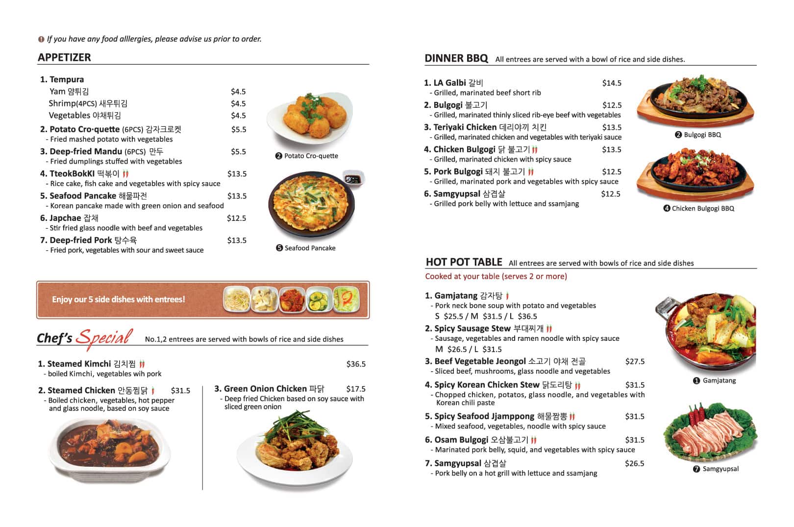 Really delicious food. The side dishes were especially good. Ordered Galbi and Bibimbap and both were fantastic. The Galbi was sizzling when it arrived. There was no menus to take to the table just one on display which was the only downside. Lovely interior and atmosphere. Definitely planning to comeback in ... the future. Read more