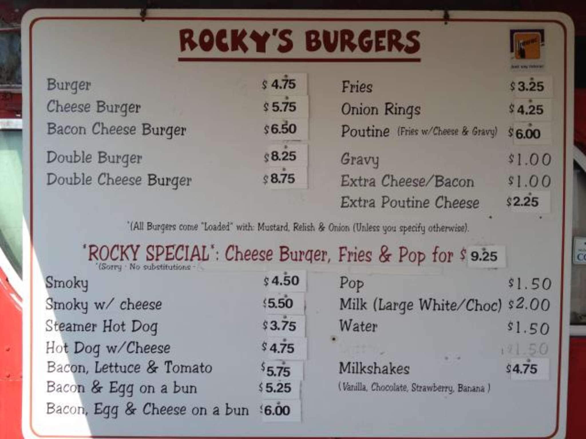Rocky's has great food and is always worth the drive. We have been coming there for years and you can know you're getting awesome food it doesn't matter the day/weather/time/how busy they are they make your order great! And you get to support a truly local business, that keep their ... prices as low as possible while always keeping the quality of their food outstanding. Read more