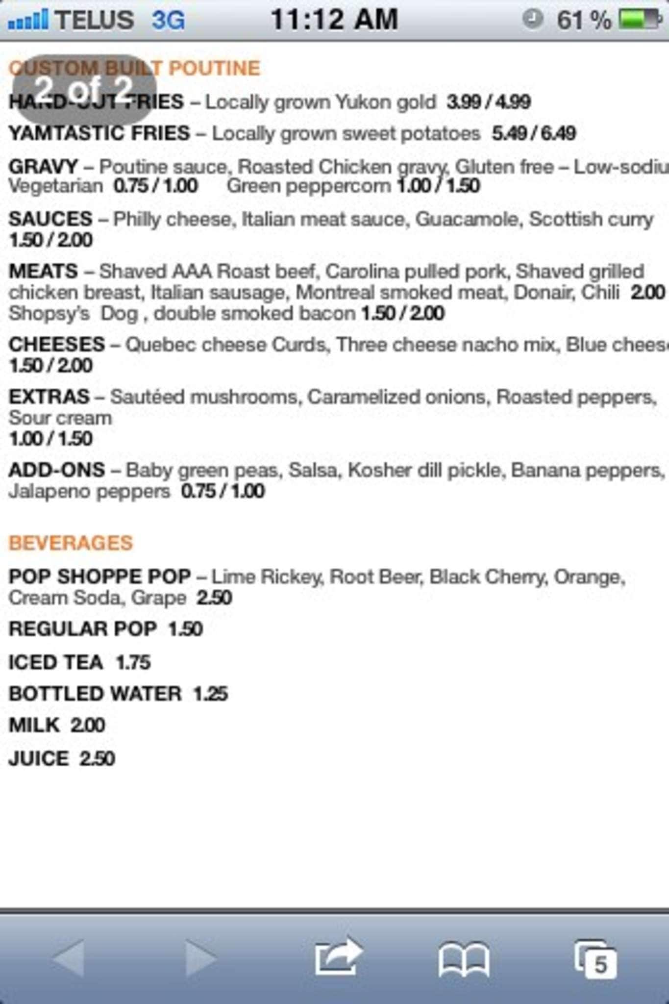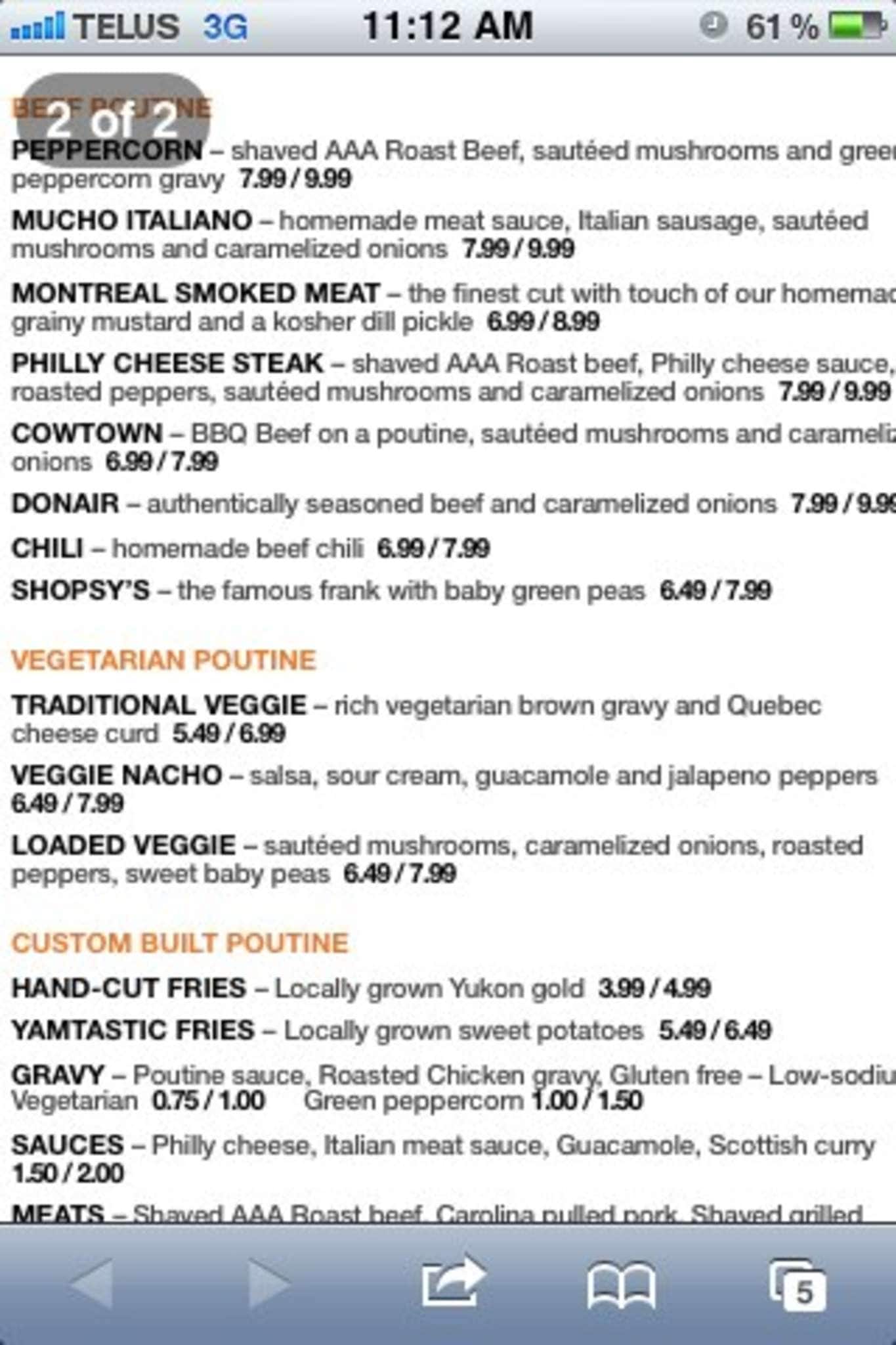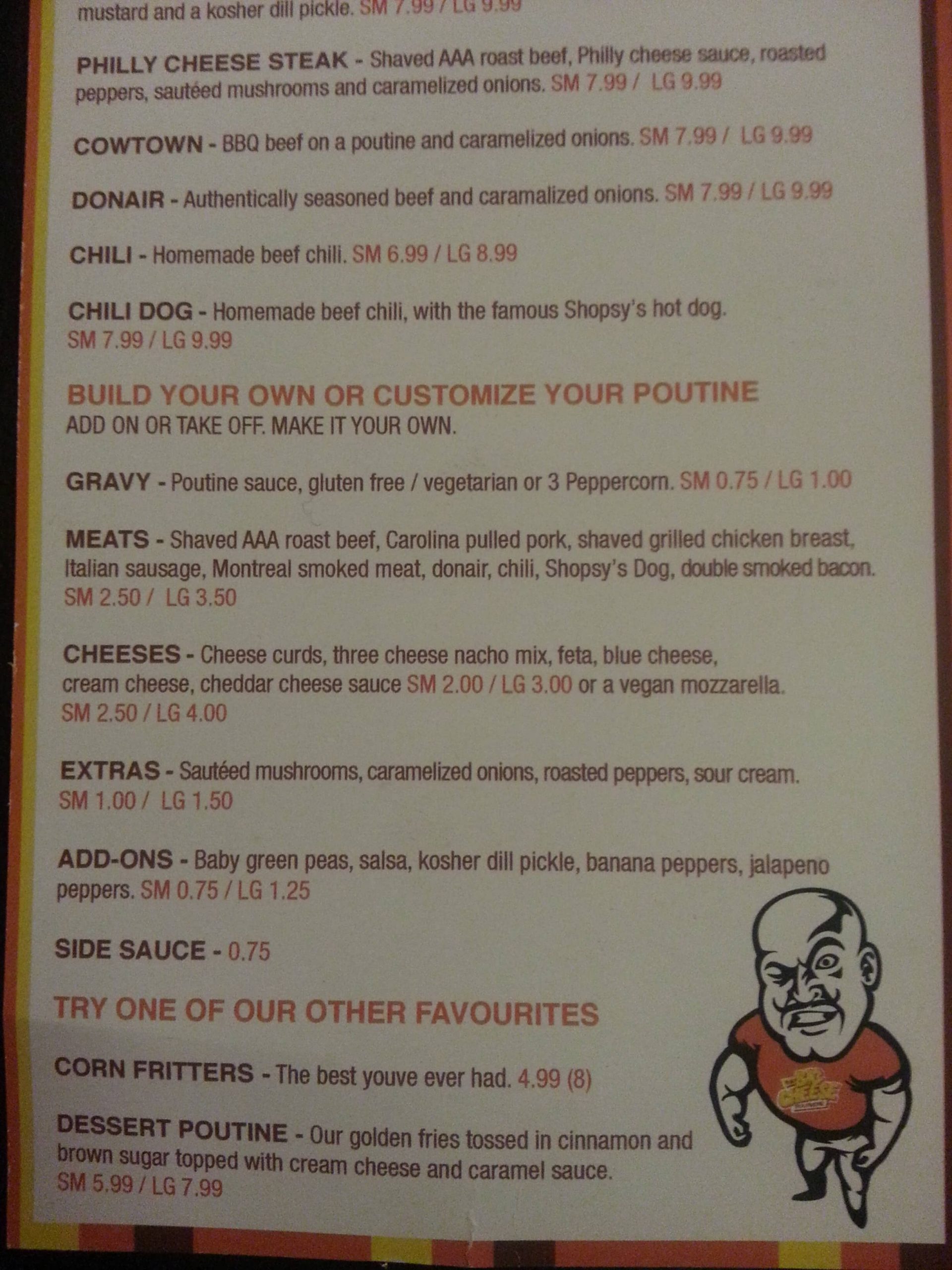 I love the poutine they made there. Every week, I order the vegetarian poutine. Last time I order the poutine with Jam, but was no so good like the regular, not enough salsa. However, they have here one of the best poutine in the 17 Ave.