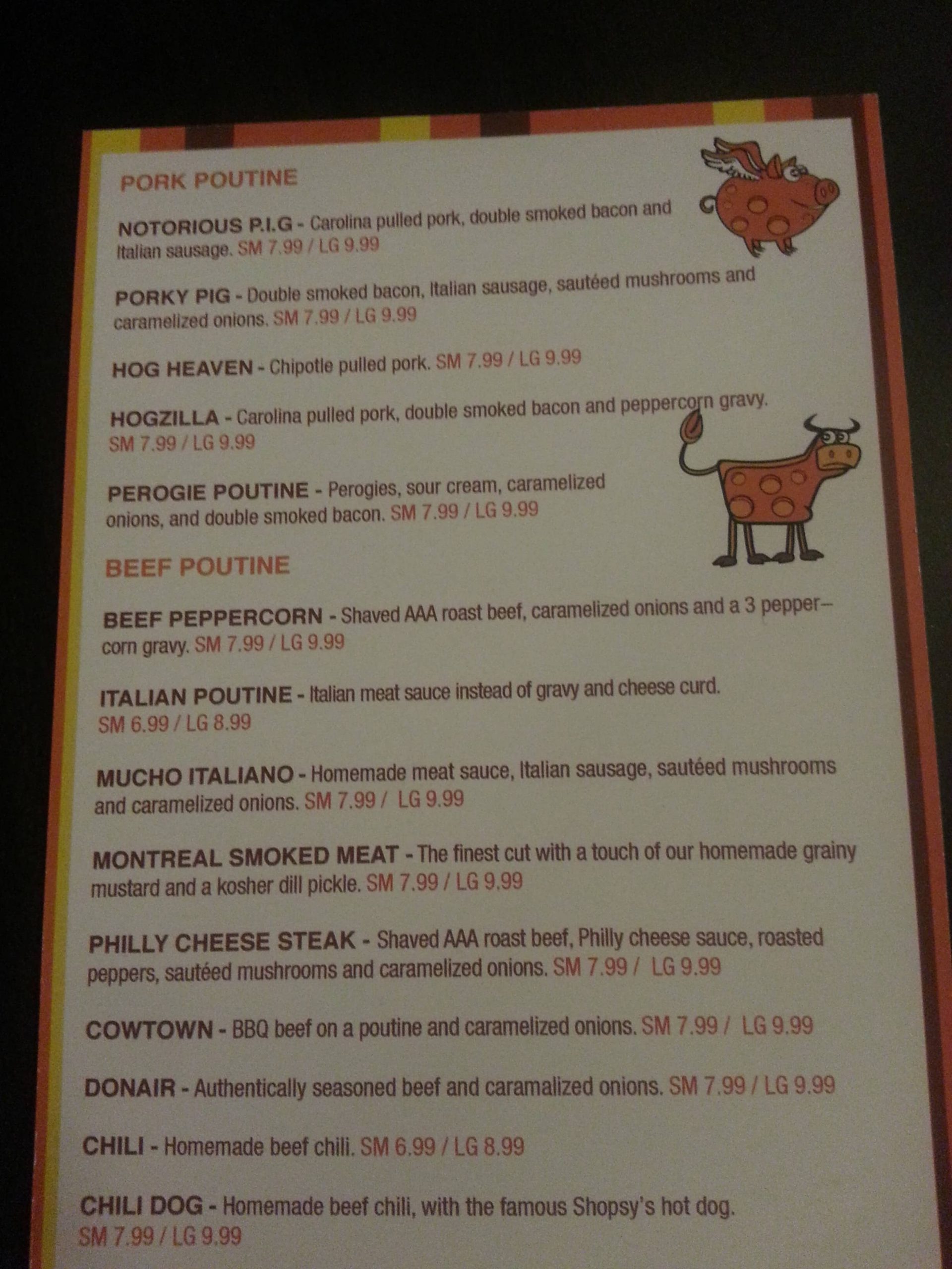 Best poutine in Calgary. Loaded with meat and cheese. I had the PORKY PIG. It was totally amazing! If you order the Large you better be hungry 😋 thanks for the amazing food and service! I will definitely be back to try more styles of poutine. We ate I ... sides iy was raining but I did see the sign for a patio! I will eat on the patio next time. Thanks again Big Cheese 🧀 Read more