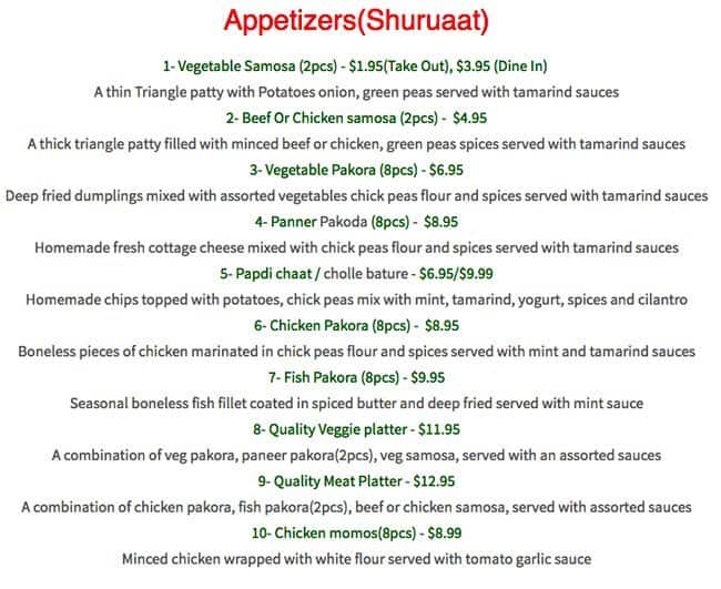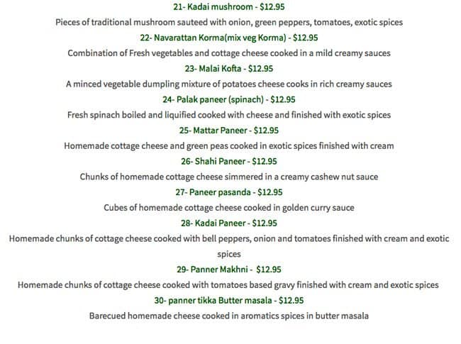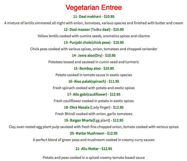 Terrific lunch and dinner options. The garlic naan and daal makhni are exceptional.
