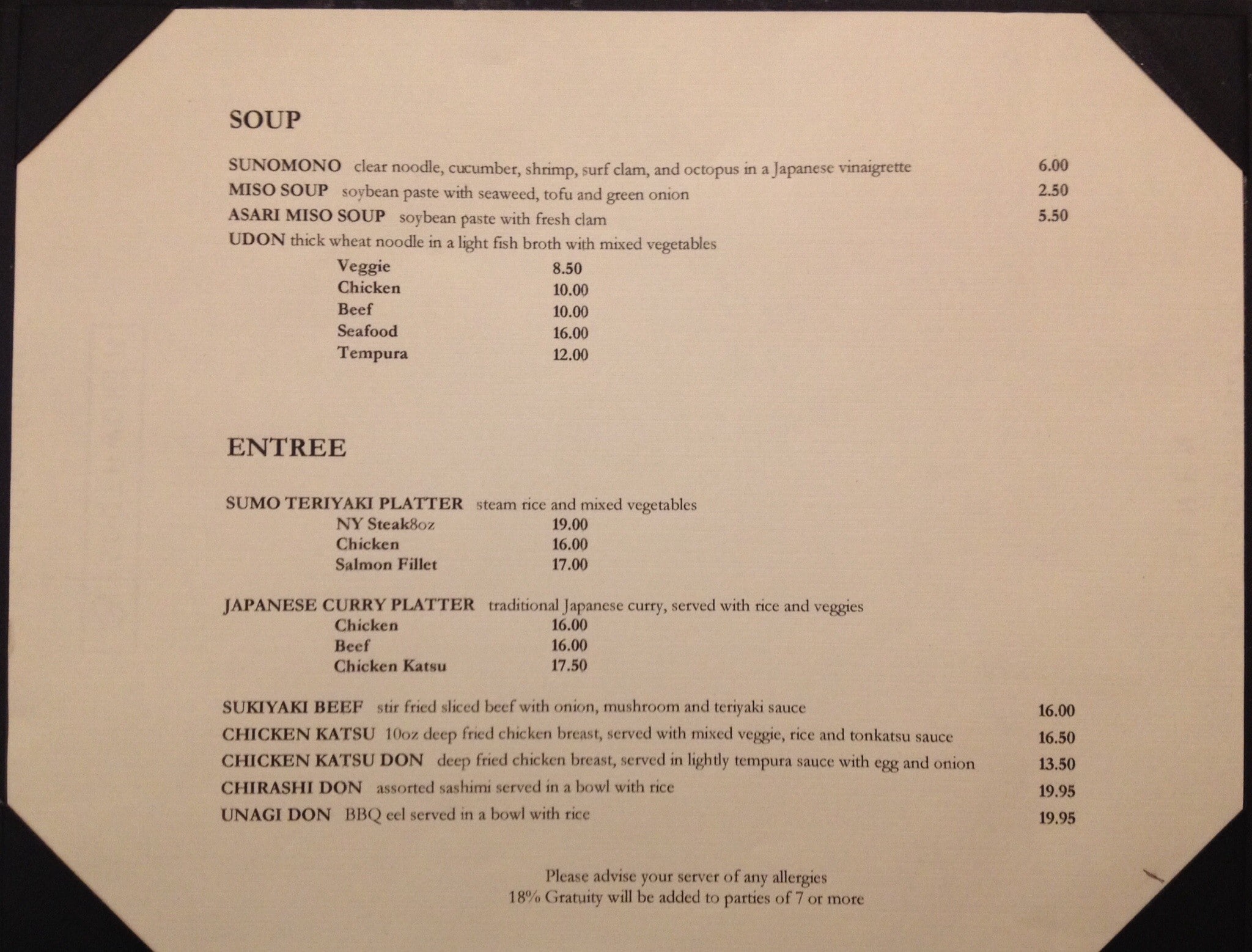 This restaurant is a gem. One of the best sushi restaurants I have been to and the best Miso soup I have ever had. Probably the closest to original Japanese sushi I have eaten in North America. If you want cold sterile safeway sushi you will be disappointed but if ... you want the real thing this is it in Calgary. Highly recommended, and although a little out of the way and in the less than inspiring Eau Claire market give this a try. I think COVID made life difficult for this small family now we and operated business please support this restaurant by visiting them. Read more