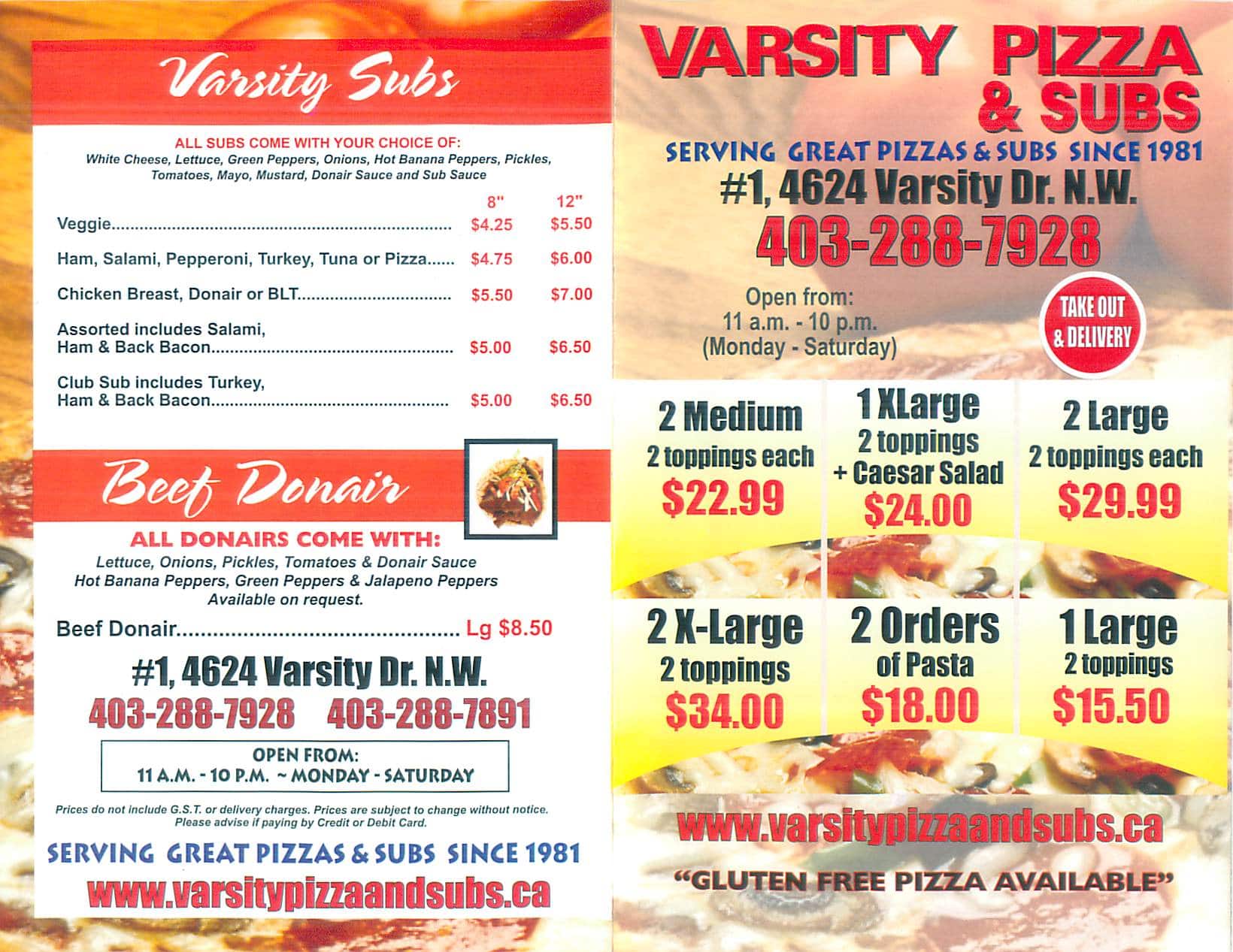 Varsity Pizza & Subs is a cherished dining spot in Calgary, known for its warm, neighborhood atmosphere and mouthwatering selection of pizzas, subs, and other Italian-American comfort foods. This eatery prides itself on using fresh ingredients to craft its wide array of flavorful dishes, offering both classic favorites and exciting new twists. Whether you’re in for a quick lunch or a casual dinner, Varsity Pizza & Subs promises a satisfying and delicious dining experience.