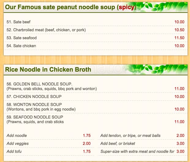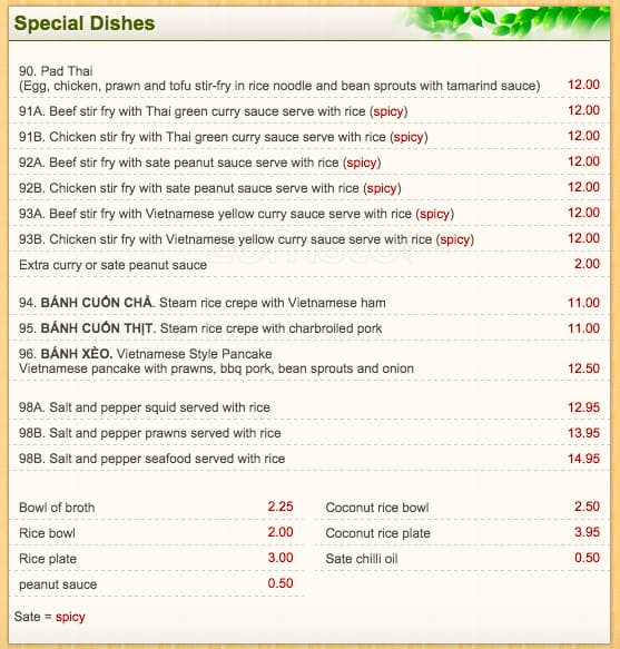 Feels and tastes like fast food pho. My order came out really quickly (which is good) but didn't have the aroma, spice and taste I would associate with pho satay. I won't be coming back sadly.