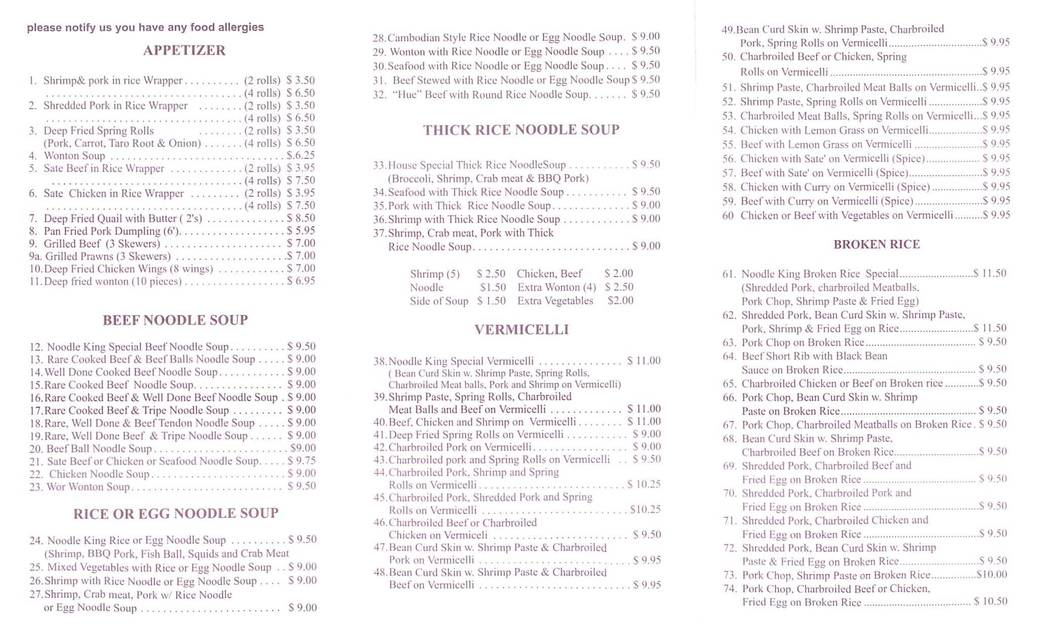 They have the best Beef Sate (peanut) noodle soup. The food service was fast and good. The food portion was great.