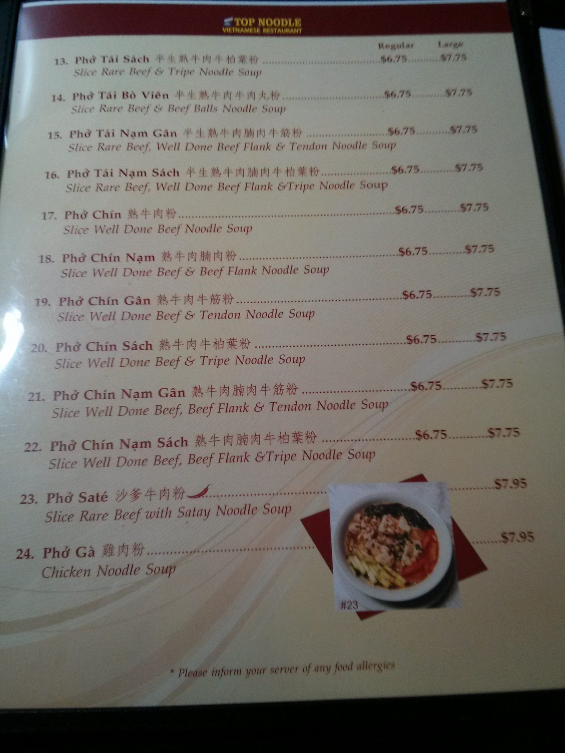 Top Noodle is now my go-to spot on Monday afternoons. Not only is their Satay Seafood Soup Noodle one of the best, the cook and staff is extremely friendly to their customer and will go the extra mile to make your experience that much more enjoyable at their restaurant.
