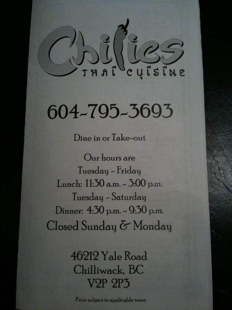 Check out TOP-10 Best Thai restaurants in Chilliwack, British ColumbiaReviews for Chilies Thai Cuisine in Chilliwack, British Columbia