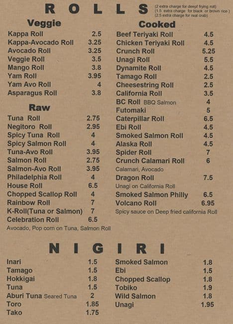 Nice and quiet. The special rolls are really creative. Only sashimi, sushi, tempura, and appetizer dishes that don’t require a grill. Food is amazing and the staff have always been nice.
