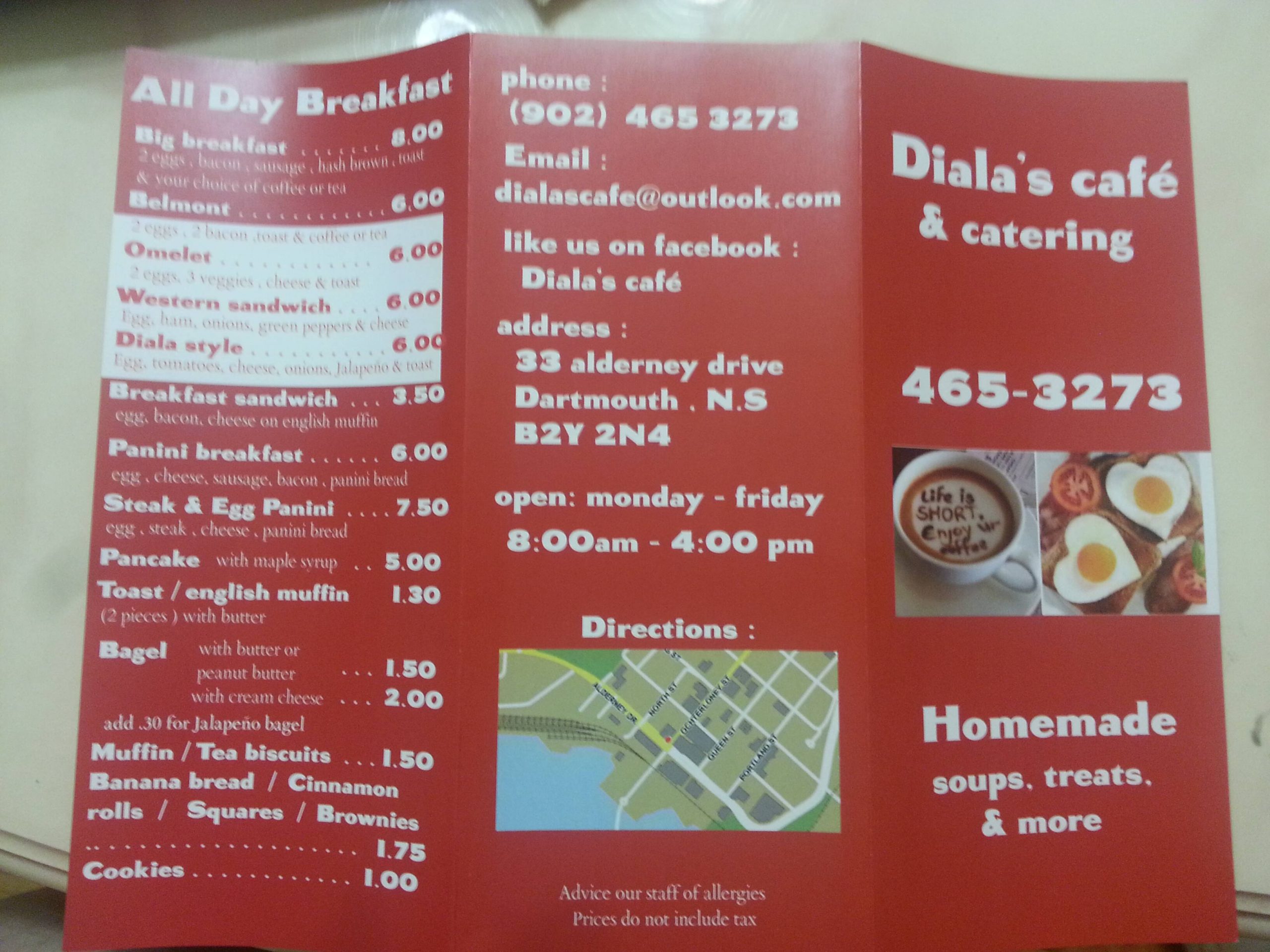 Diala’s Café is a cozy spot nestled in the heart of Dartmouth, Nova Scotia. This charming café offers an inviting atmosphere where guests can indulge in a selection of mouthwatering homemade dishes, delectable pastries, and a variety of beverages. Perfect for a casual brunch or a relaxed afternoon, Diala’s prides itself on using fresh, local ingredients to create flavorful, comforting meals.