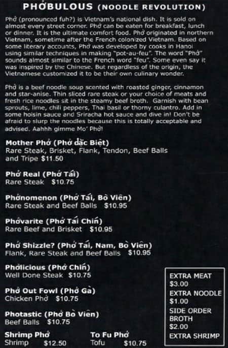 We had the Mother Pho and Phovirite. Both are great-tasting Pho with flavorful broth. Meat are fresh and tender. Serving size is smaller compared to competitors at similar price point. Their green tea is amazing, must try!