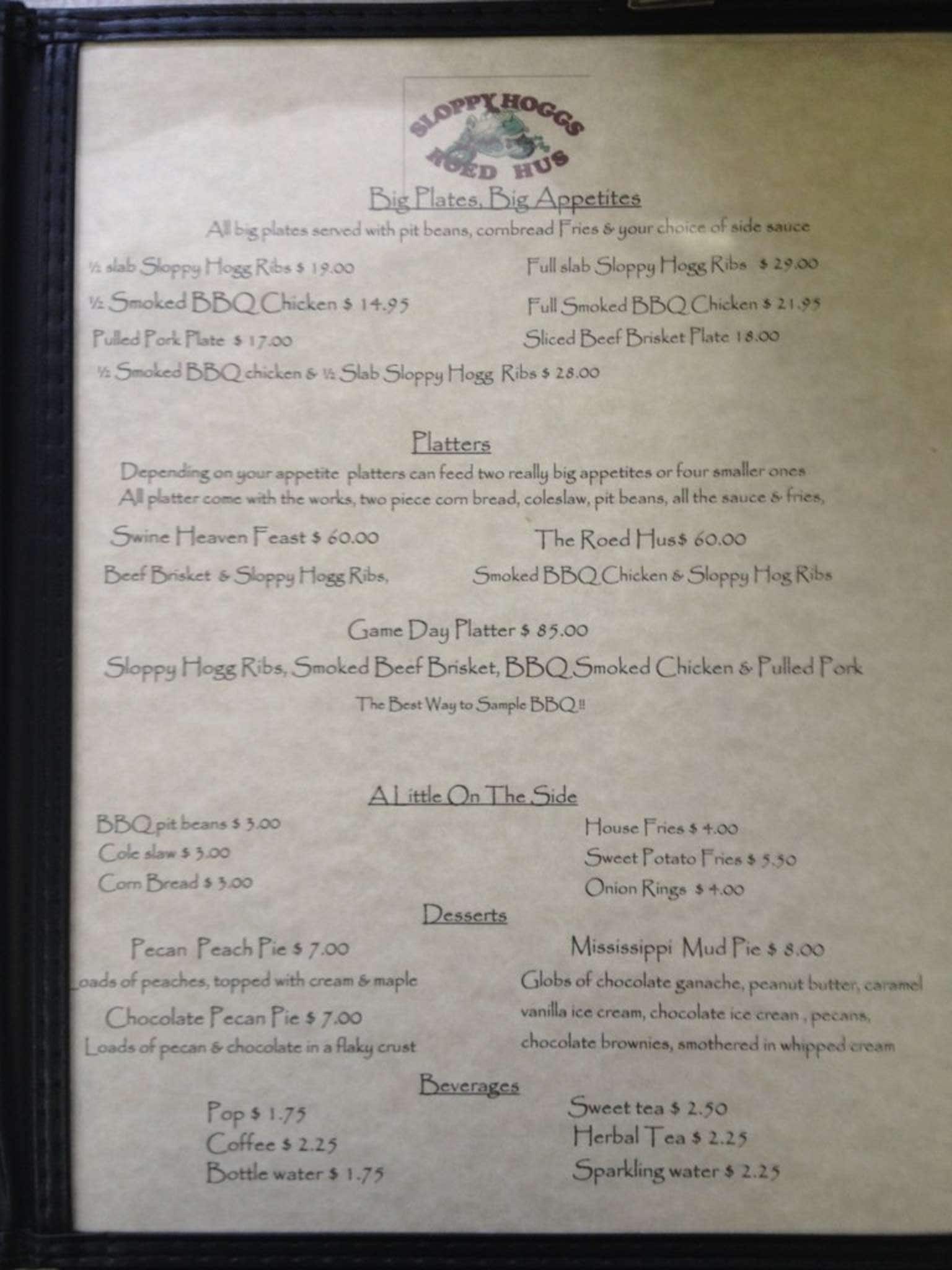 Amazing place to eat the staff was friendly and the meal was incredible. The portions are very generous and the flavor was fantastic. I highly recommend coming and getting your Sloppy Hogg on. The different flavored BBQ sauces we're a very nice touch to compliment the me. There are ... many sides to choose from when completing your order. The desserts looked great but we're not on my diet. Maybe next time!! Thank you!! Read more