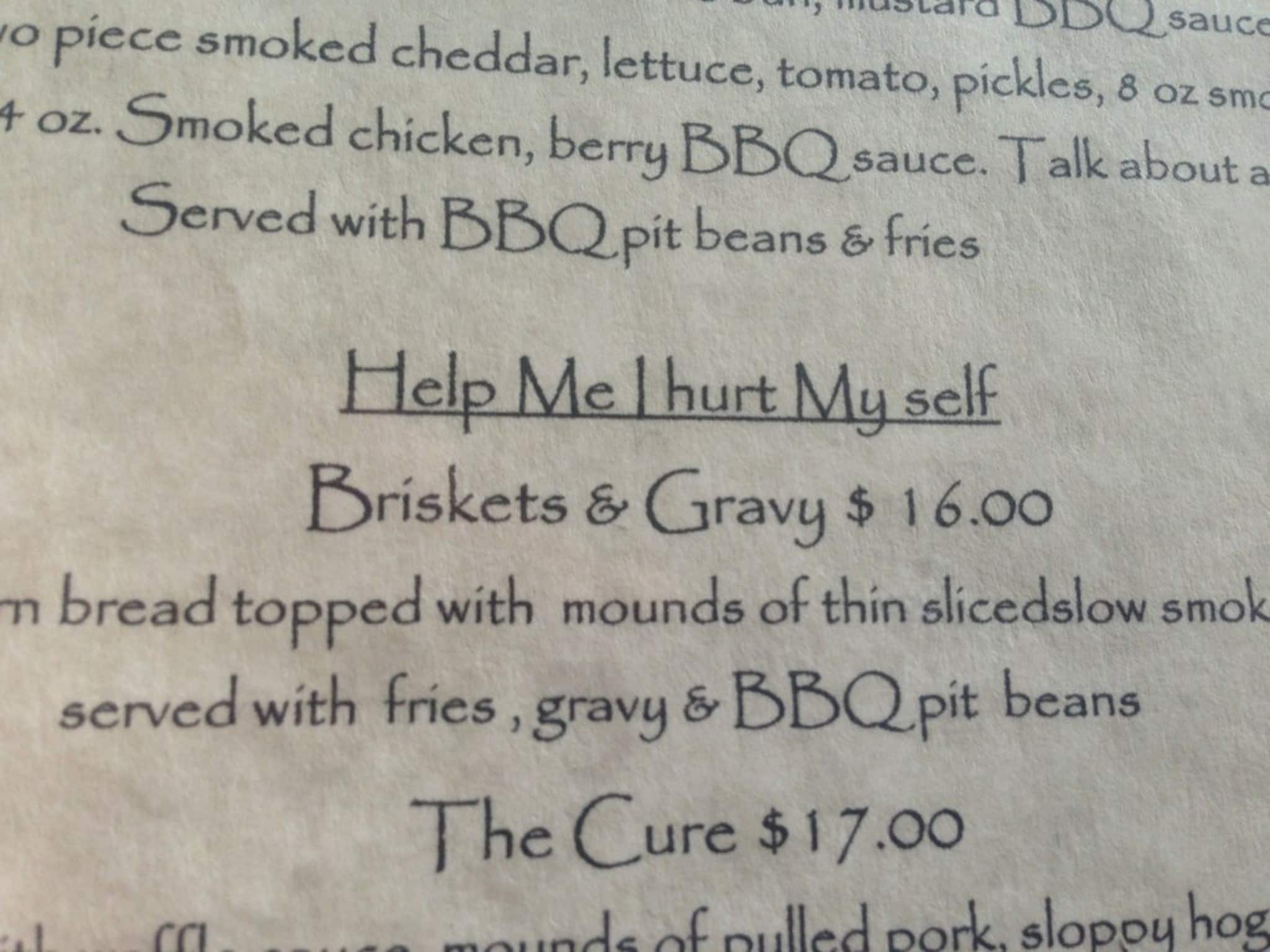 Service and ambience was great. Food not so much. Corn bread was stale, dry and crumbled. Pulled pork was dry and gritty. St. Louis ribs were old and tasted like they were cooked the day or so before and reheated under the broiler. The brisket was pretty good, unfortunately 1 ... LB seemed more like half. Sorry guys have to try harder, we won’t be back. Read more
