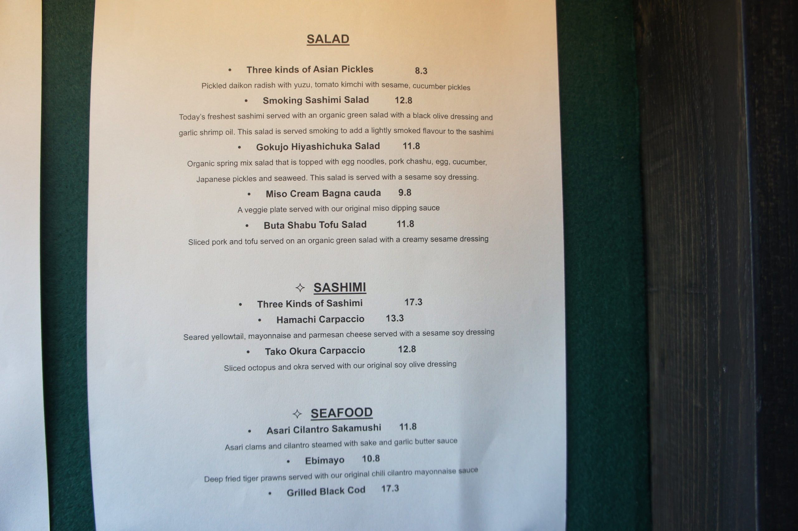 Ambiance, Atmosphere, Decor, Quality, Price, Menu