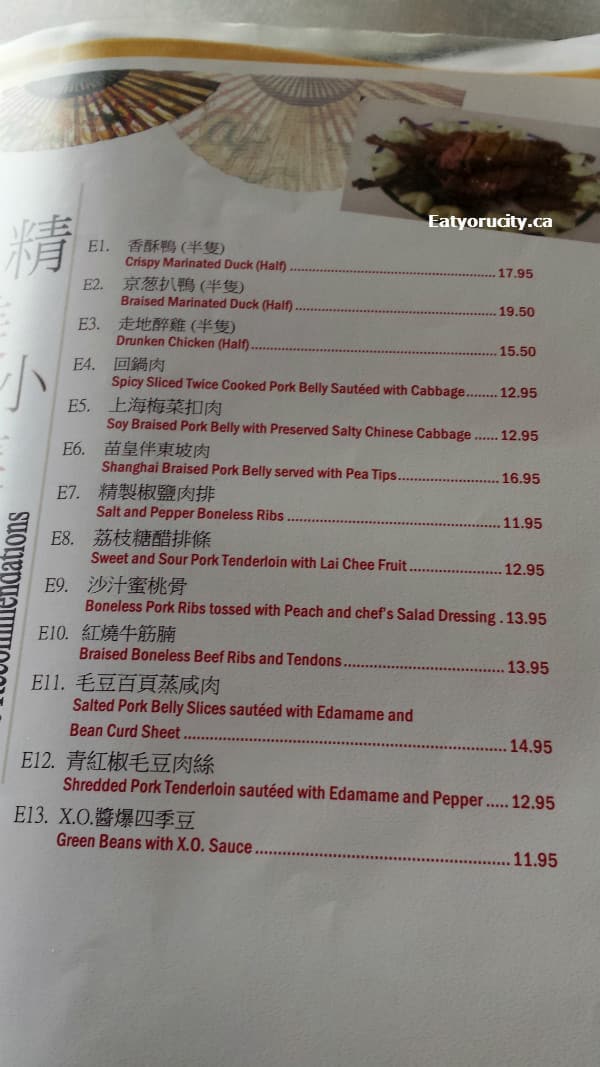 My family got the set dinner for 6 and added pan fried beef dumplings and lamb soup dumplings. Everything was tasty. My favorites are the pan fried beef dumplings, crispy marinated duck, and pan fried soy king fish. Do yourselves a favour and try it!!