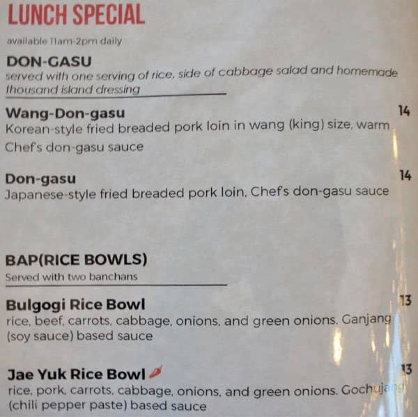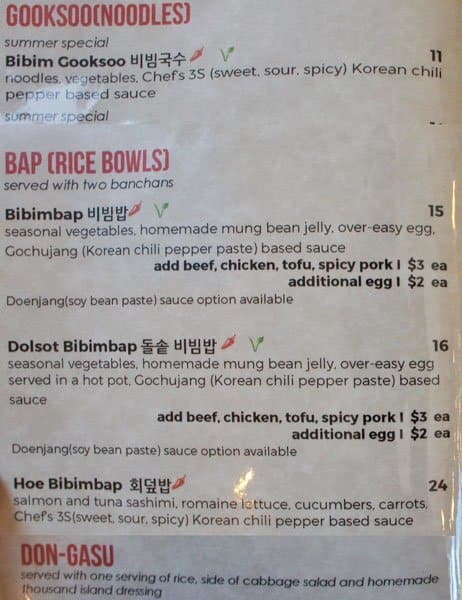 Pros: - the food is good - the decor is very modern and stylish, and the restaurant is very clean - the service is good - the location is awesome Cons: - the portions are small, especially since the prices are on the high side (the dumpling soup comes with just 3 normal-sized dumplings in a ... clear soup) - the pork bulgogi lunch special I got had more cheap "filler" items than I expected; a lot of rice compared to the amount of meat, and it also came with french fries which was weird Read more