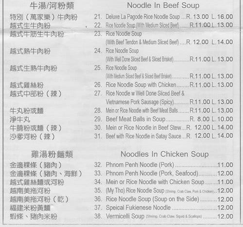 Best pho in the city! Have tried a few other places and always end up disappointed, but never here. My girlfriend and I always get a 25 regular and a 25 large, and share a side of spring rolls - the bill is always under $50 (including tax and a ... 20% tip). VERY generous portions, never skimpy on the beef or toppings. Where else could you get a dinner out with such good service for such an affordable price? The restaurant is extremely clean (including the bathrooms), the service is very good and it is clear the owners take pride in their business. Will continue to rave about la pagode as our favourite restaurant and our first choice for any dinner out Read more