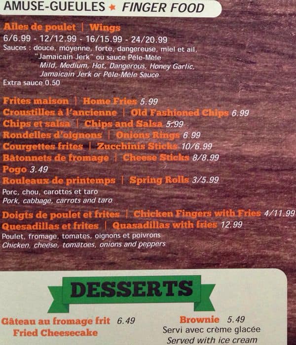 development system Menu of Le Pêle-Mêle - Gatineau, Quebec