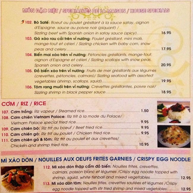 Palais Du Vietnam in Gatineau, Quebec, offers an authentic culinary journey with its menu rich in traditional Vietnamese flavors. This gem is celebrated for its inviting ambiance, friendly service, and a diverse menu that caters to both adventurous eaters and those wishing to savor classic dishes. Whether you’re craving pho, spring rolls, or exotic beverages, it’s the perfect spot for a memorable dining experience.