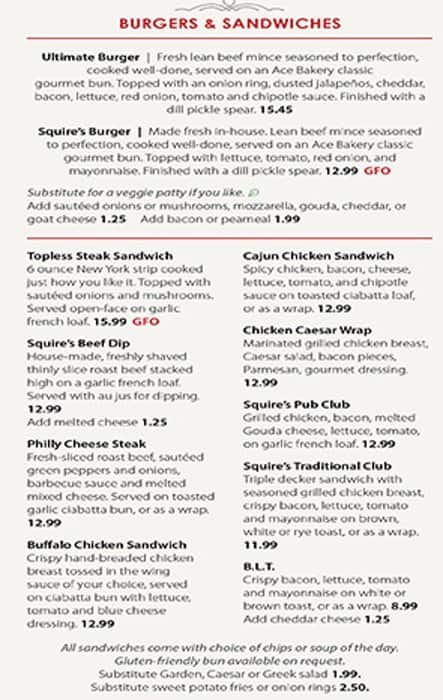 Just recently had our event there, it was in a separate room in the back, that’s had its own separate entrances to the washrooms and outside. The room was huge, and worked out beautifully for our party of approx 50 ppl. There was still quite a bit of ... room to spare. Trent ( the manager) and his crew were amazing! They were so accommodating, easy going, and so helpful. The food was really good, but i already knew that about Squires ;) ….the chicken wings were my favourite. I really appreciated how they let me bring in chips, pretzels and stuff like that for the tables, as well as our own cake. Everything else they supplied, including a cake cutter. They also allowed me to decorate the room however I wanted, with the exception of confetti…which I totally get. We got the “Snack buffet”, which was great, and boy we got a tonne of food….we came home with so much leftover. Lastly I’ll say, the price pretty reasonable I felt, and I would definitely recommend anyone to book your party there. Oh and kids are welcomed there as well. Read more