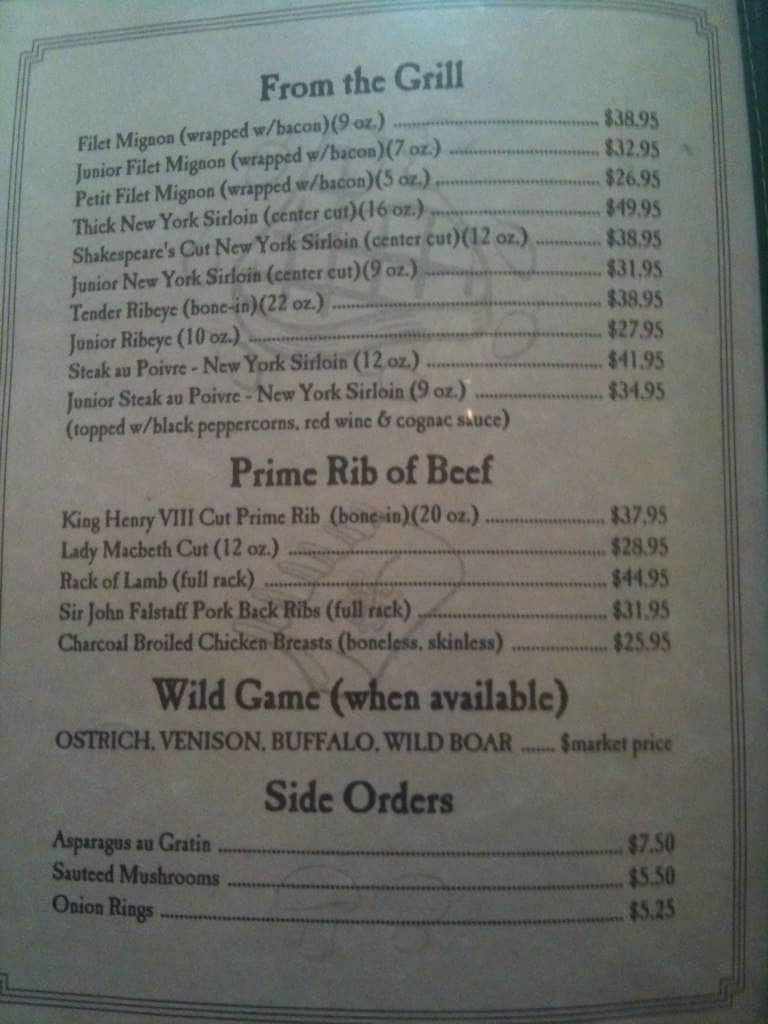 I highly recommend Shakespeare's to all who have not tried or have not been back in a while. Having moved to Stoney Creek recently after spending my entire adult life in Toronto/Missisauga I have tried almost every high-end steak house. Shakespeare's meets my expectations of what an experience ... at a restaurant, of this genre, should be. I have made this my go to place in Hamilton and have now been 10+ times in the 3 months since I have been in Stoney Creek. I have tried two other steakhouses in the area and they dont compare value for $$ and quality. Try the broiled shrimp, swordfish and of course the steaks. Ceaser Salad ingredients are made in house as is the whole dressing and you can immediately taste that it is homemade daily. Read more