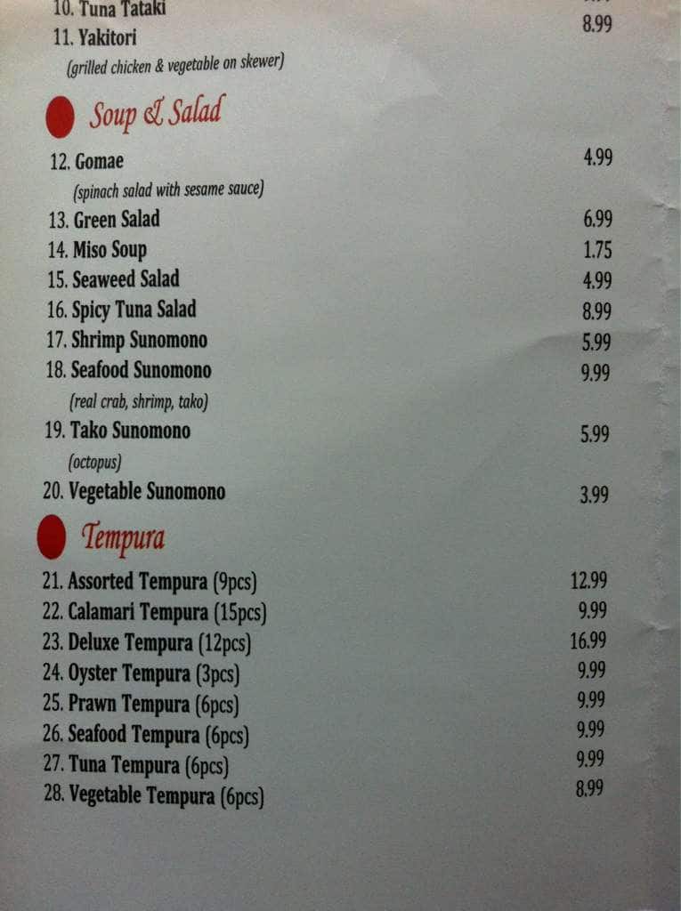 I explored the reviews given before I tried this restaurant, and they are correct about the decently friendly staff. As an obsessive Japanese cuisine customer, I found the food itself well below mass-consumer average, and worse than your grocery store sushi. Their tea was quite pleasant, along with their miso ... soup, but that was it. The sushi is incredibly sloppy (literally fell apart when I picked it up), not that flavourful, and the tempura vegetables were slightly burnt. To top off my 1 Star Review, I also had excruciating stomach pains after leaving the restaurant, and spent most of my evening in the bathroom. I do not recommend trying this restaurant, and will never be returning. Read more