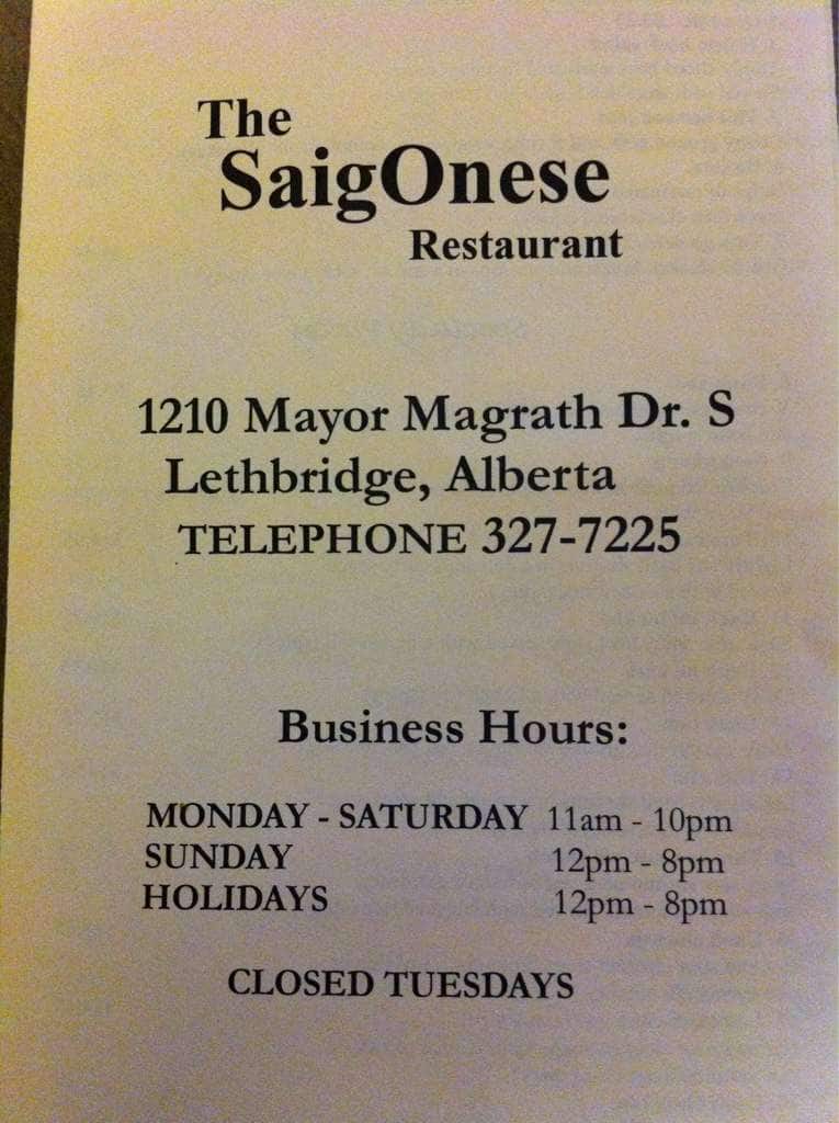 The Saigonese Restaurant - Lethbridge, Alberta