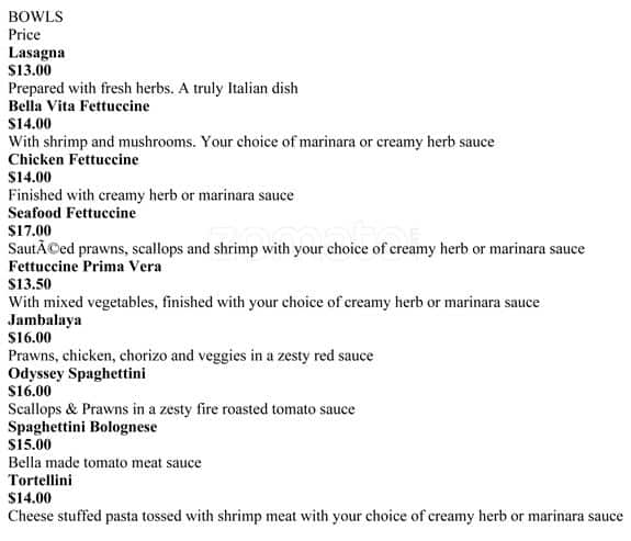 Bella Vita/Odessey Bistro is a cherished gem in Maple Ridge, offering a unique blend of delightful culinary experiences. This cozy bistro prides itself on serving a fusion of flavors, where traditional meets contemporary. Guests are invited to explore a menu brimming with inventive dishes, prepared with the freshest local ingredients. Ideal for both romantic dinners and casual gatherings, it’s a culinary escape that promises a memorable dining adventure.