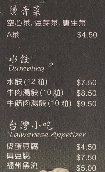 Authentic Taiwanese comfort food that brings me back to Taipei. Price is good and the portion is generous. If you've made it pass 5 minutes of sitting and feeling adventurous. I recommend trying their fried golden brown Stinky Tofu. Be warned. It stinks … like weeks-old worn socks in the tropics. It tastes ... as it smells but if you hold your breath a little, it's really not that bad. It's crispy on the outside and soft and smooth inside. There's a very slight hint of ammonia from fermentation and while eating it, you actually forget the smell with the sauce. Good luck 🙃 Read more