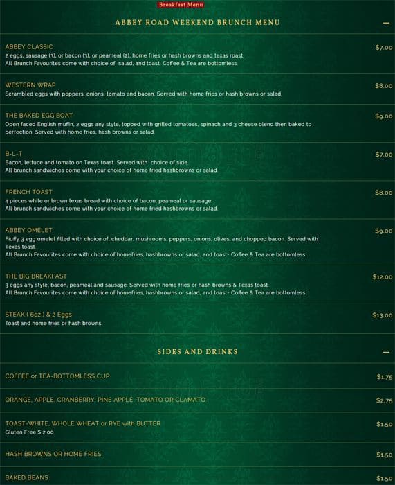 Nestled in the heart of Mississauga, Abbey Road Pub & Patio offers a charming escape with its cozy atmosphere and delightful outdoor seating area. This British-themed pub brings a slice of the UK to Canada, featuring a menu packed with classic pub fare alongside a selection of local and imported brews. Whether you’re here to enjoy a lively evening with friends or a quiet dinner, Abbey Road provides a welcoming space for all occasions.
