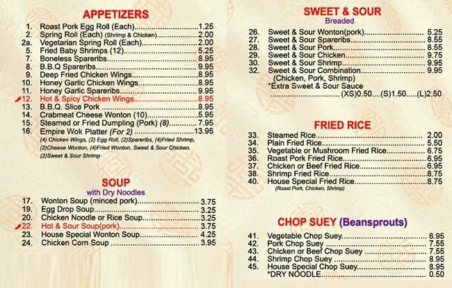 Empire Wok at Clarkson Crossing serves up a delightful array of Chinese cuisine, offering a tantalizing menu that spans traditional favorites to modern takes on classic dishes. Known for its friendly atmosphere and flavorful dishes, it’s a go-to spot for both locals and visitors looking for quality food in a casual setting. Whether you’re craving crispy spring rolls, savory General Tao’s chicken, or sizzling Szechuan beef, Empire Wok promises a memorable dining experience.