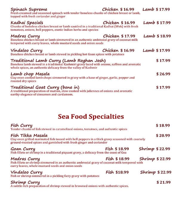 Went there for an afternoon dinner. Nice place. Clean. The food was just average. Nothing special. Overpriced. VERY SMALL portions. The only delicious item was naan. Good customer service but little too slow.