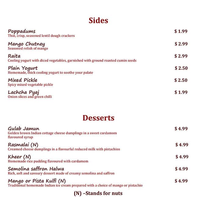 I ordered lamb byriani and butter chicken.......I know what i wanted and was expecting so much more cause the rating on skip was 10!!! The byriani was dry and its the most expansive one i paid so far usually 16 this was 22 . Thanks god they was the yogurt ... sauce to hydrate it! And the butter chicken came w no rice to eat with! Strange. And i never had a butter chicken w only tomatoe sauce???? Just sad! Read more