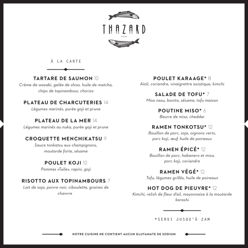 Thazard is a chic eatery nestled in the heart of Montreal, offering a unique blend of culinary delights. Renowned for its inventive dishes that draw inspiration from various global cuisines, the ambiance is both cozy and contemporary. A favorite amongst locals, Thazard is perfect for those looking to explore bold flavors and creative cocktails in a relaxed, stylish setting.