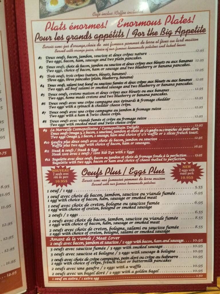 Had breakfast there today and was disappointed. Have eaten there in the past with no complaints but I guess it was a bad day. Ordered the St.Jean plate 2 eggs, mashed potatoes, bacon, creton, beans, blueberry pancake with fruit. The bacon was overdone, Potatoes cold, had ... to pre-order the coffee as it to was cold. Even the portion was smaller than usual. Have had better times for sure and I have probably been there 10 times In the past. Read more