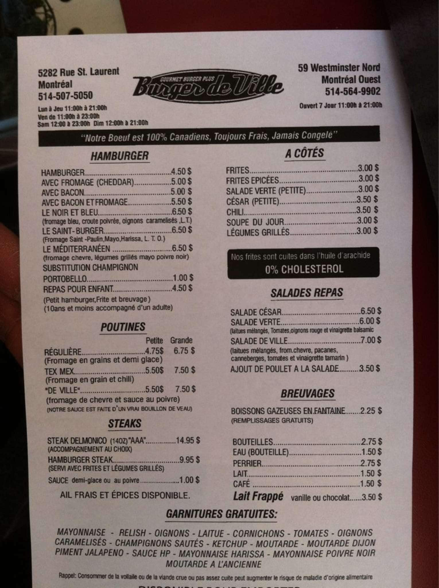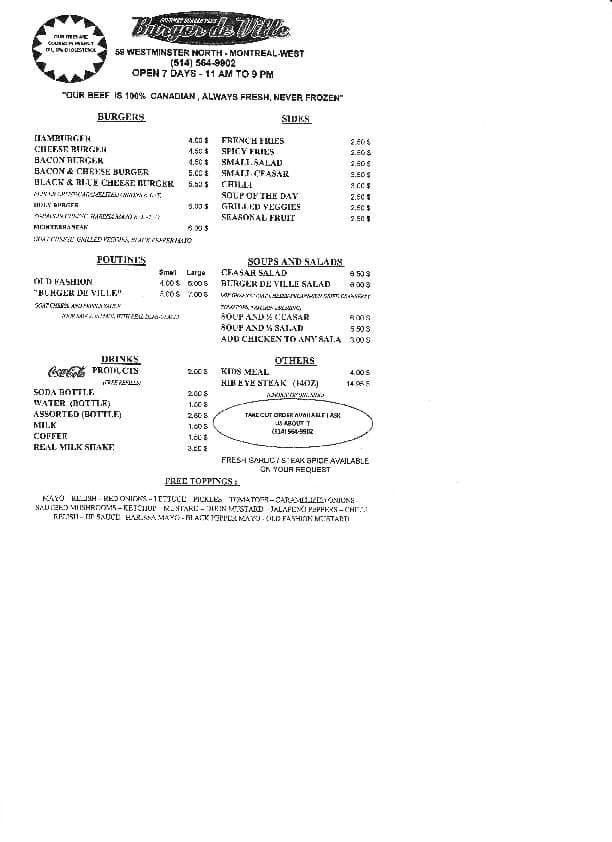 development system Menu of Burger de Ville - Montreal, Quebec