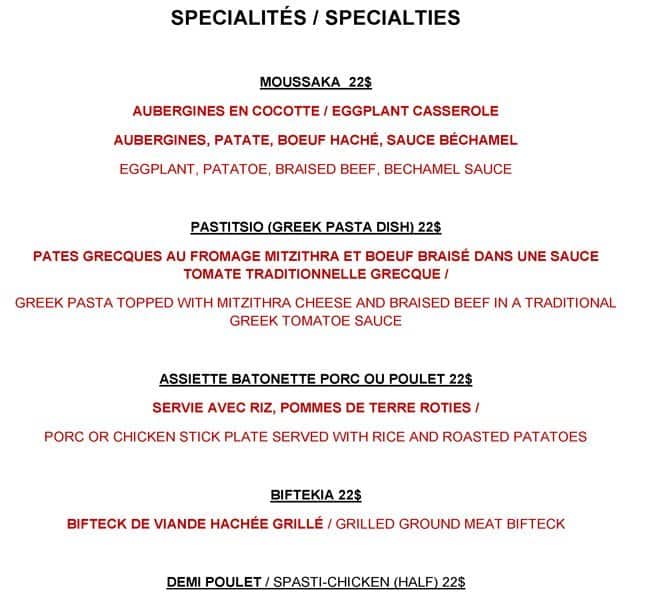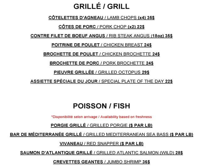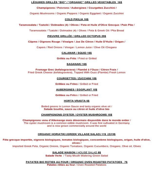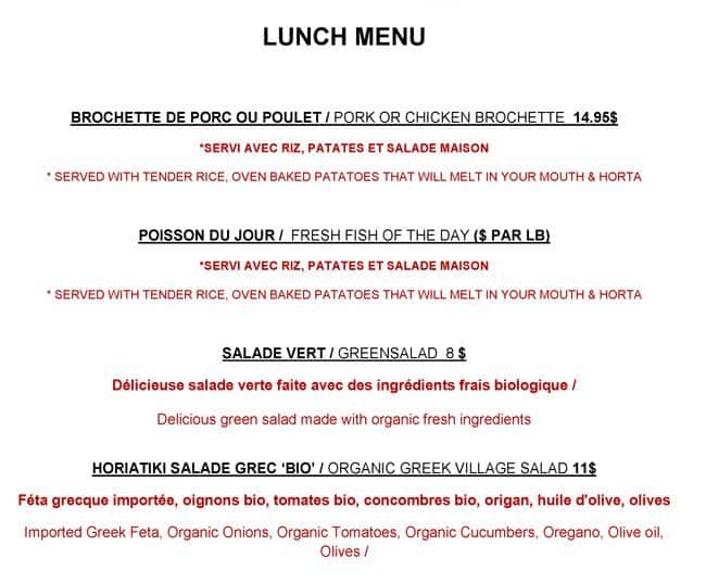 development system Menu of Pireas Resto Bar - Montreal, Quebec